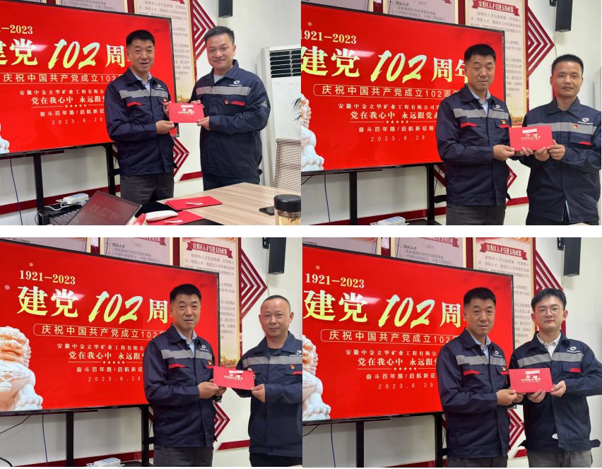 安徽中金立华矿业工程有限公司党支部开展迎“七一”主题党日活动。党支部为12名党员精心准备了“政治生日”贺卡,引导党员时刻牢记使命责任。在党旗前,全体党员重温入党誓词,进一步坚定理想信念,不忘入党的初心使命。
