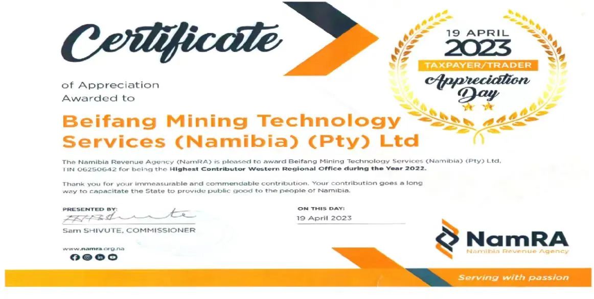 履行社会责任丨纳米比亚公司连续两年获得“优秀纳税人”荣誉奖项